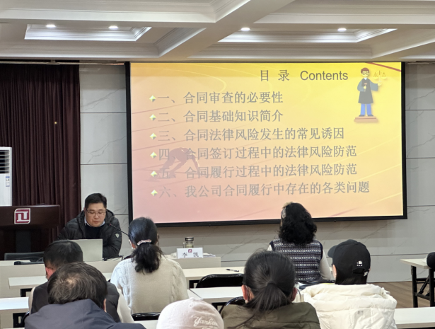 為強化公司職工法務常識,有效規(guī)避各類合同法律風險,按照路通公司企業(yè)內(nèi)部培訓計劃,2023年12月21日下午,安全法務部在二樓會議室開展合同法律風險防范專題培訓,各分、子公司的合同經(jīng)辦人及機關(guān)各部室代表參加了此次培訓。