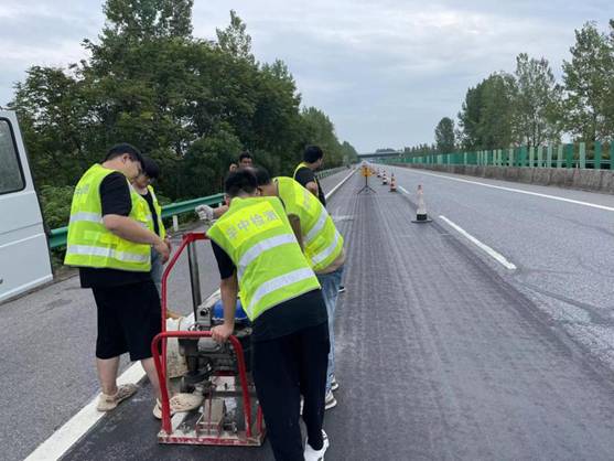 7月14日—18日受光山市公路事業(yè)發(fā)展中心的委托,路通公司質(zhì)檢中心展開大廣高速光山段取芯檢測工作,本次檢測路段為大廣高速上行車道,檢測長度為32.12km。針對當(dāng)?shù)卦O(shè)計院規(guī)劃的取芯點位,三天順利完成取芯工作。此次工作的開展標(biāo)志著質(zhì)檢中心自主承接高速公路檢測業(yè)務(wù)邁入新階段。