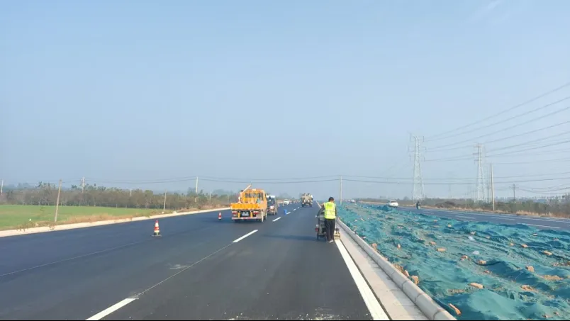 隨著施劃的完成,現(xiàn)場的工人們露出了欣慰的笑容,他們多日來的辛勤付出終于迎來了成果。如今,嶄新的道路宛如一條巨龍蜿蜒伸展,清晰的標線為車輛指引著方向,堅固的護欄守護著行車安全,有效的聲屏障減少了噪音干擾。這些標線和交安設施不僅是道路的標識,更是安全與秩序的保障。