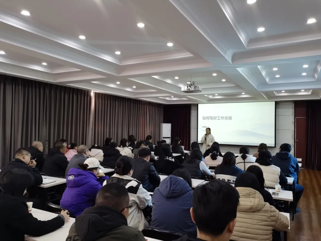 為更好梳理和總結(jié)年度工作,11月20日下午,機(jī)關(guān)綜合辦副主任郭芳娜以“如何寫好工作總結(jié)”為主題開展“公文寫作系列培訓(xùn)”第九期培訓(xùn)課程。路通公司副總經(jīng)理周麗娟出席活動(dòng)現(xiàn)場(chǎng),各部室、各單位職員40余人參加,綜合辦主任宋艷麗主持本次培訓(xùn)。
