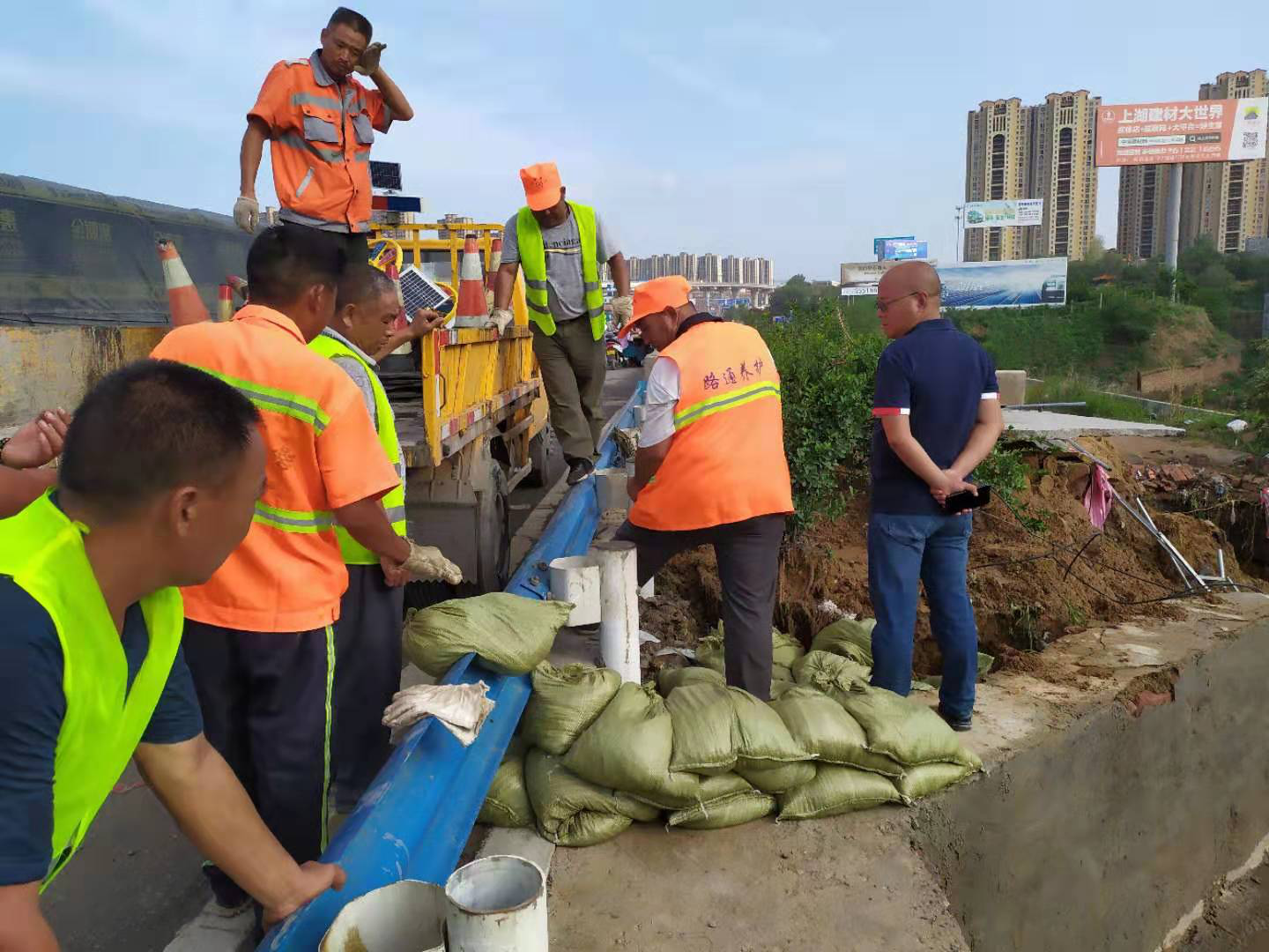 快速反應(yīng),保障安全。定期檢查黃商泵站、沿黃泵站、邙山泵站的排水設(shè)備能夠正常使用,嚴(yán)格落實(shí)汛期領(lǐng)導(dǎo)帶班和24小時值班制度。在8月2日出現(xiàn)的隴海西路須水河支溝大橋西側(cè)嚴(yán)重水毀中,經(jīng)各級領(lǐng)導(dǎo)現(xiàn)場勘查研究,迅速采取處治措施,目前已將水毀情況解決,保障了該路段的正常通行。