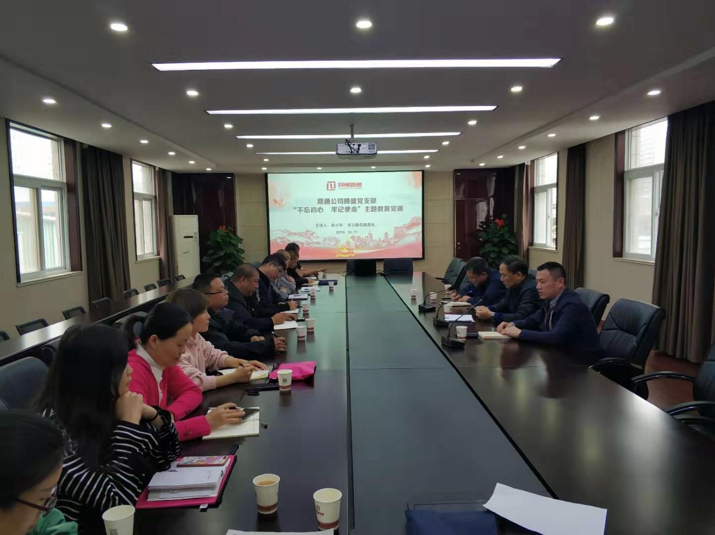 10月11日下午,騰盛公司黨支部在路通公司三樓會議室召開“不忘初心牢記使命”專題黨課教育活動。本次專題黨課由市公路管理局彭小平副局長主講。路通公司總經(jīng)理郭孟濤、黨委副書記秦舸、騰盛公司全體黨員、入黨積極分子參加。